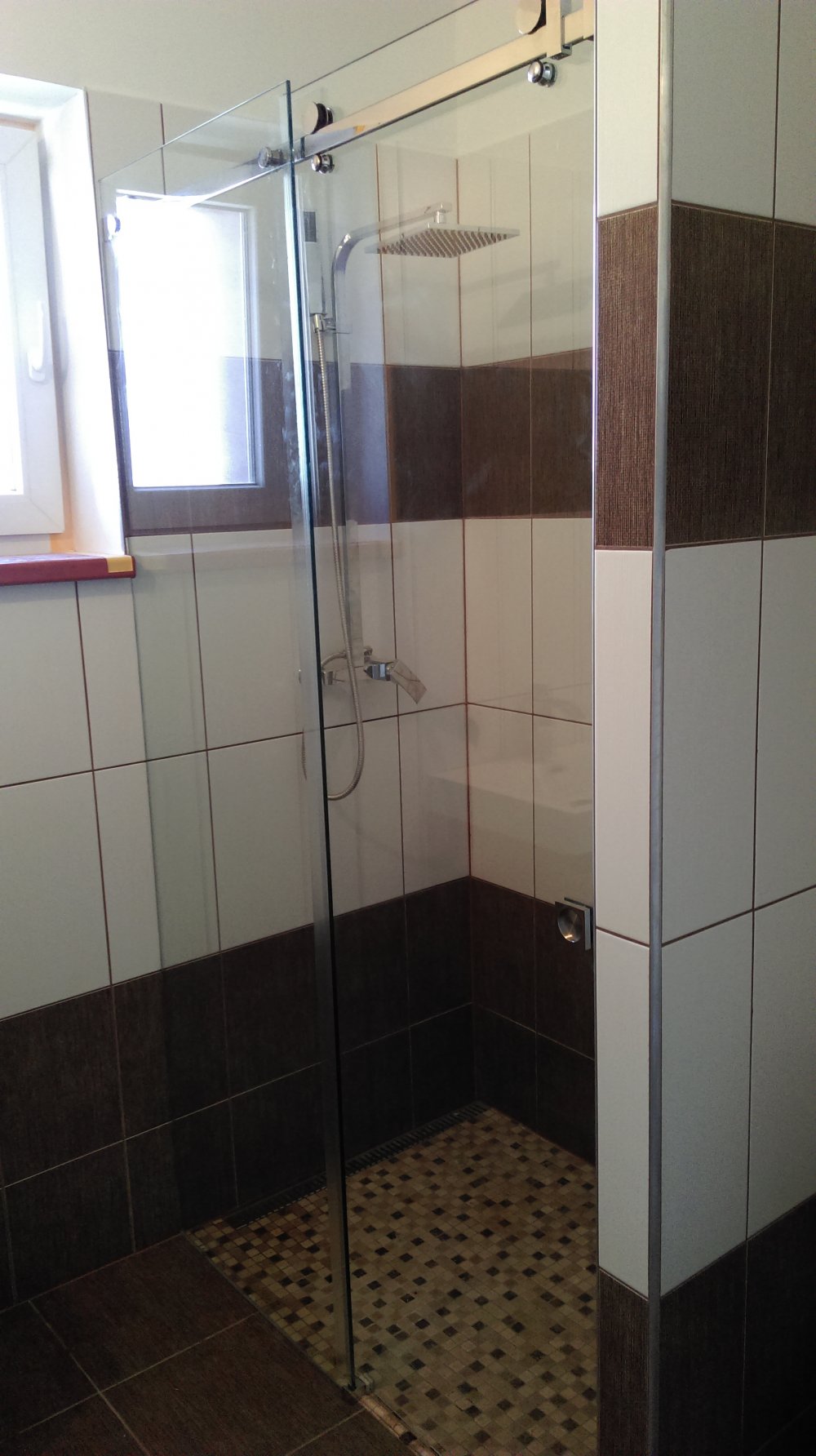 Nabízíme vám BEZRÁMOVÉ SKLENĚNÉ SPRCHOVÉ KOUTY A DVEŘE vyrobené z nejčastěji používaného 8 mm bezpečnostního skla. Sklo, které nabízíme, může být čiré, pískované, satináto nebo s různými pískovanými či gravírovanými motivy. Standardně nabízíme přes stovku motivů.
